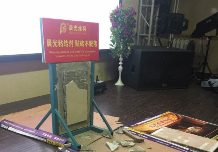 现场氛围极为热烈,吸引诸多室内装饰工程及一线施工人员参与,在会上不仅对艺彩PA视讯在线官网瓷砖粘结剂进行了较为系统的介绍,而且以现场“打砸会”的形式,切切实实地感受艺彩PA视讯在线官网粘结剂“不空鼓、不脱落”的卓越性能,以眼见为实的抗暴力试验,赢得现场来宾的一致称赞。
