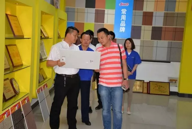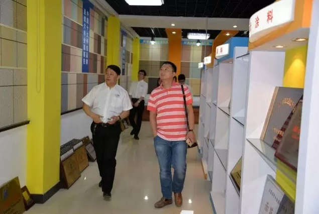 PA视讯在线官网董事长缪国元、总经理薛亚波陪同李总现场考察参观,薛亚波总经理在展示厅对PA视讯在线官网多样产品类型进行讲解,对于PA视讯在线官网的创新品类如PA视讯在线官网水包砂、变色涂料、绝热保温涂料、艺术涂料、水性纳米耐擦写涂鸦漆等多样产品做了介绍,李总强调了亚厦股份对于艺彩PA视讯在线官网瓷砖粘结剂、变色涂料等创新产品的关注,这与他们在工程实际当中的迫切需求相吻合,因此对后续合作非常期待。