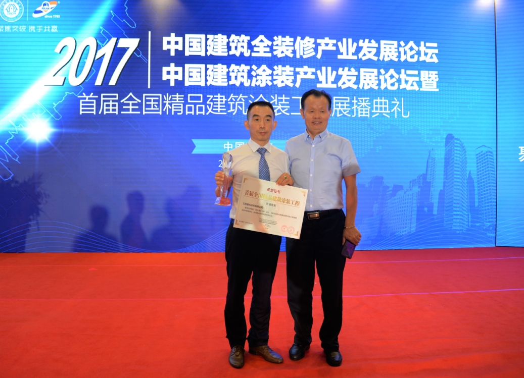 作为中国建筑装饰产业的高规格盛会,来自国内的多家企业共同见证了中国建筑装饰协会全装修产业分会全新启航,缪国元董事长作为中装协全装修产业分会会长之一,在现场接受职位任命,并从专业角度就PA视讯在线官网发展经验,进行以“让涂料更智能”为主题的演讲,以开放、共享的民族涂料品牌的使命感,分享科技力量所带来的智能飞跃,为推进全装修产业的发展进步而努力,缪国元董事长也因在业内多年耕耘的突出贡献,被评为“中国建筑涂装领域功勋人物”,业内功勋卓著,当然实力圈粉。
