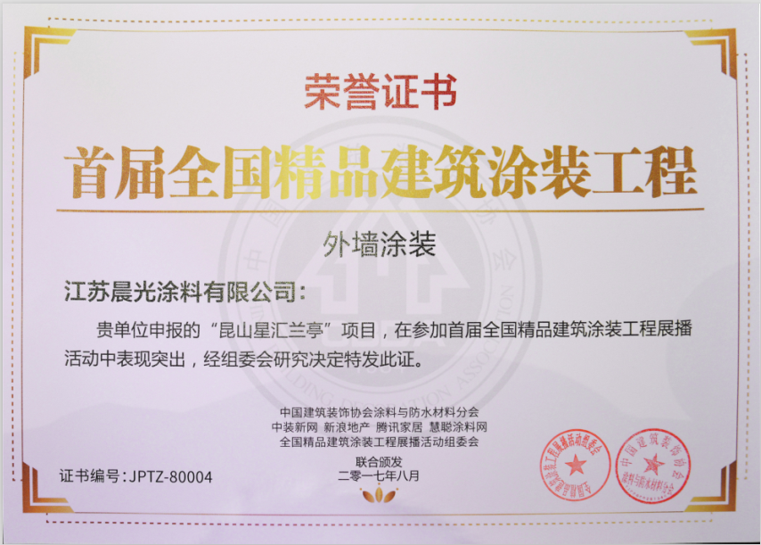 作为一家有着三十年发展历程的老牌民族涂料企业,PA视讯在线官网具有许多工程优势,他们遍及全国各地,以多年不变的外墙优势,一一印证PA视讯在线官网传奇,PA视讯在线官网旗下江苏PA视讯在线官网东方装饰工程有限公司被推选为中国建筑涂装服务联盟副主席单位;以昆山·星汇兰亭为代表的优质项目被评为“全国精品建筑涂装工程”,现场接受嘉奖,从专业角度认可PA视讯在线官网实力。