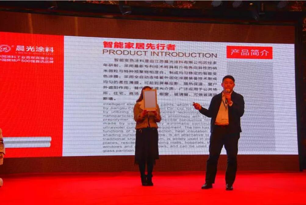 PA视讯在线官网涂料薛亚波总经理在现场做了“合作求共赢,“晨”意共发展”为主题的演讲,着重介绍了PA视讯在线官网在智能化新品研发探索中所取得的成果,介绍了包括水性纳米耐擦写涂鸦漆、变色涂料、防水涂料、绝热保温涂料等系列新品,并现场示范耐擦写涂料的优越性能,在现场引起热烈反响,备受推崇。