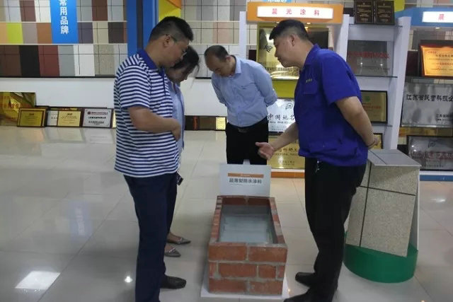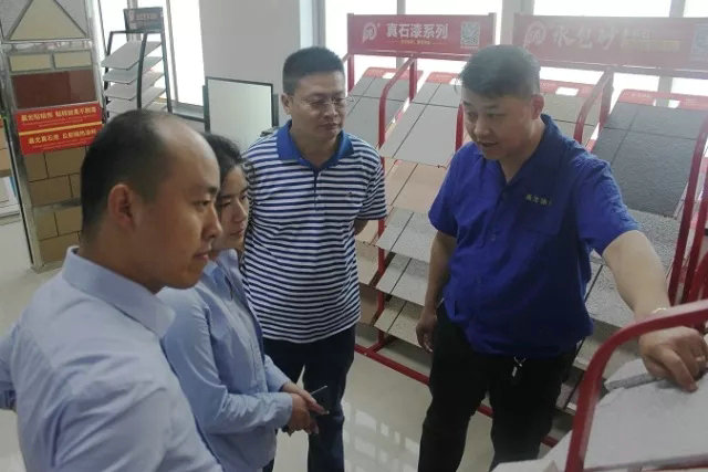 PA视讯在线官网涂料总经理薛亚波先生接待考察团一行,并带领他们全面了解PA视讯在线官网新品升级的智能化成果,并就水包砂多彩石、智能变色调光膜、瓷砖粘结剂、超薄防水涂料等多个产品系列性能优势进行介绍,从产品革新水平来见证PA视讯在线官网的自主研发进取心,以实力赢得认可。