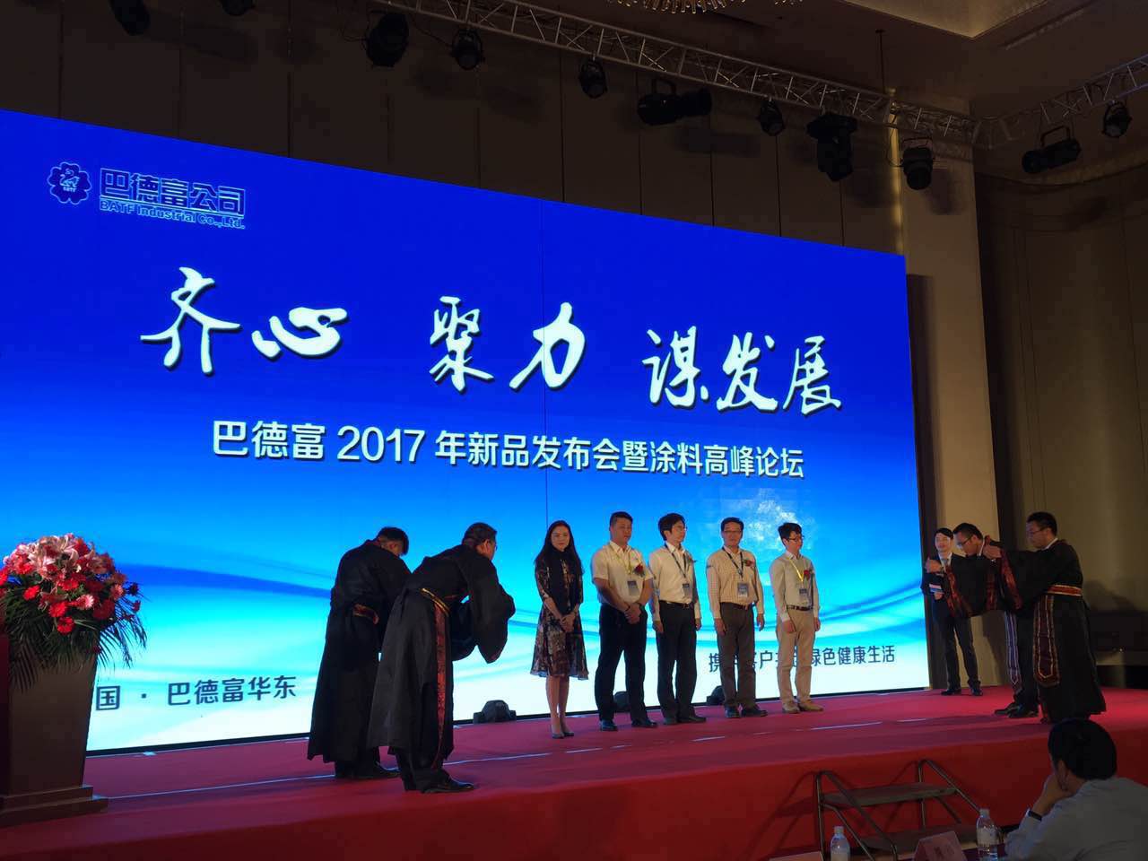 5月26日,巴德富2017新品发布会暨涂料高峰论坛在中国·常熟隆重举办,巴德富作为国内最大的乳液制造商和销售商,一直与PA视讯在线官网涂料保持良好的合作关系,为PA视讯在线官网产品提供了优质的乳液原材料,在这次年度盛会上,PA视讯在线官网薛亚波总经理受邀出席,并在大会论坛上作为特邀嘉宾现场发言。
