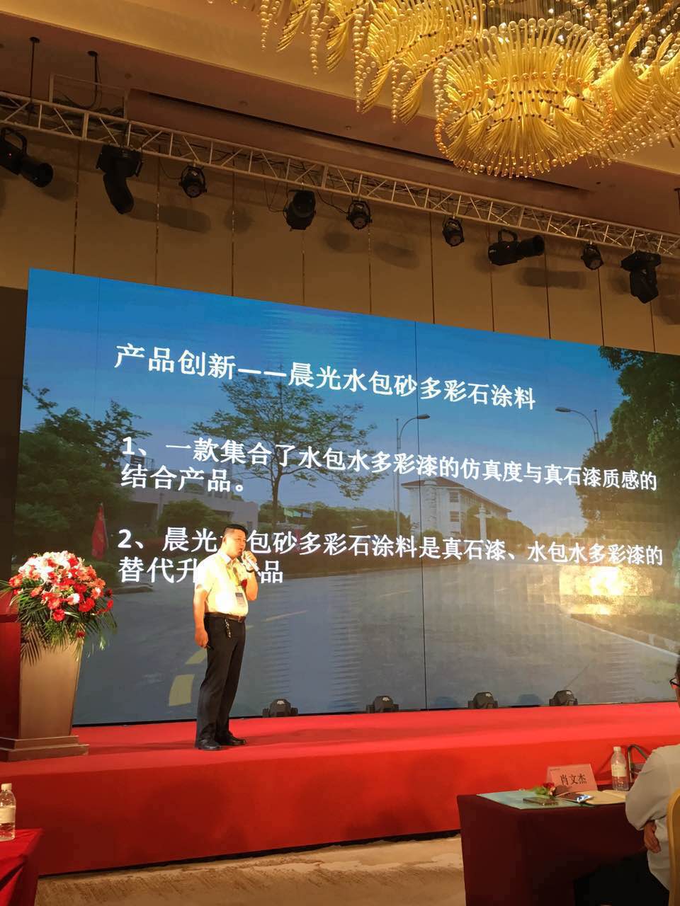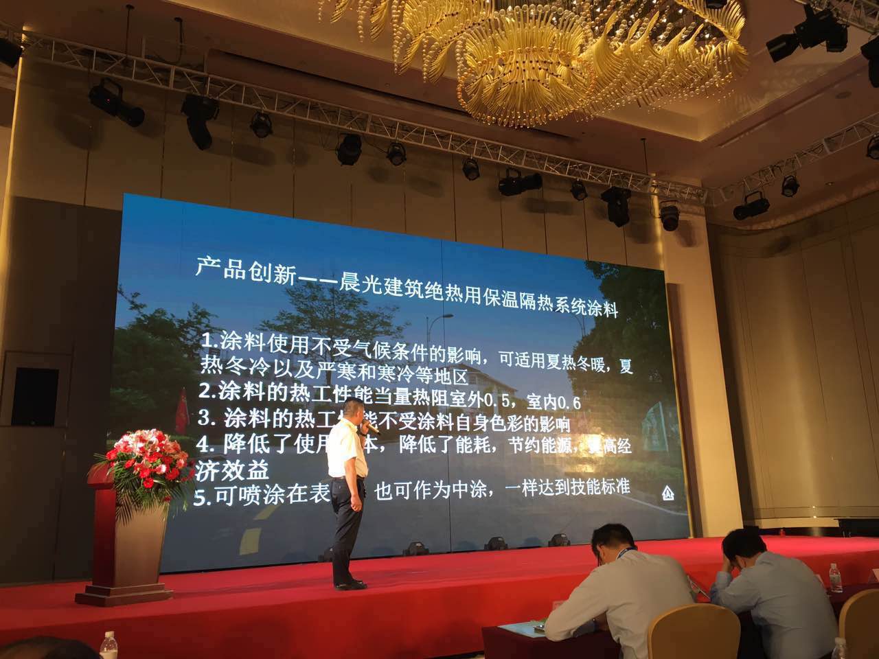 因PA视讯在线官网在涂料业内一贯的领跑地位,薛亚波总经理受特别邀约,在会上从行业宏观角度解读江苏涂料行业发展的趋势,分享从业多年的经验,在现场探讨涂料行业新进程,同时以PA视讯在线官网近些年自身发展为实例,以PA视讯在线官网代表性创新产品绝热保温材料、水包砂多彩石为代表,强调了科技创新所带来的影响力,在现场引起热烈反响。