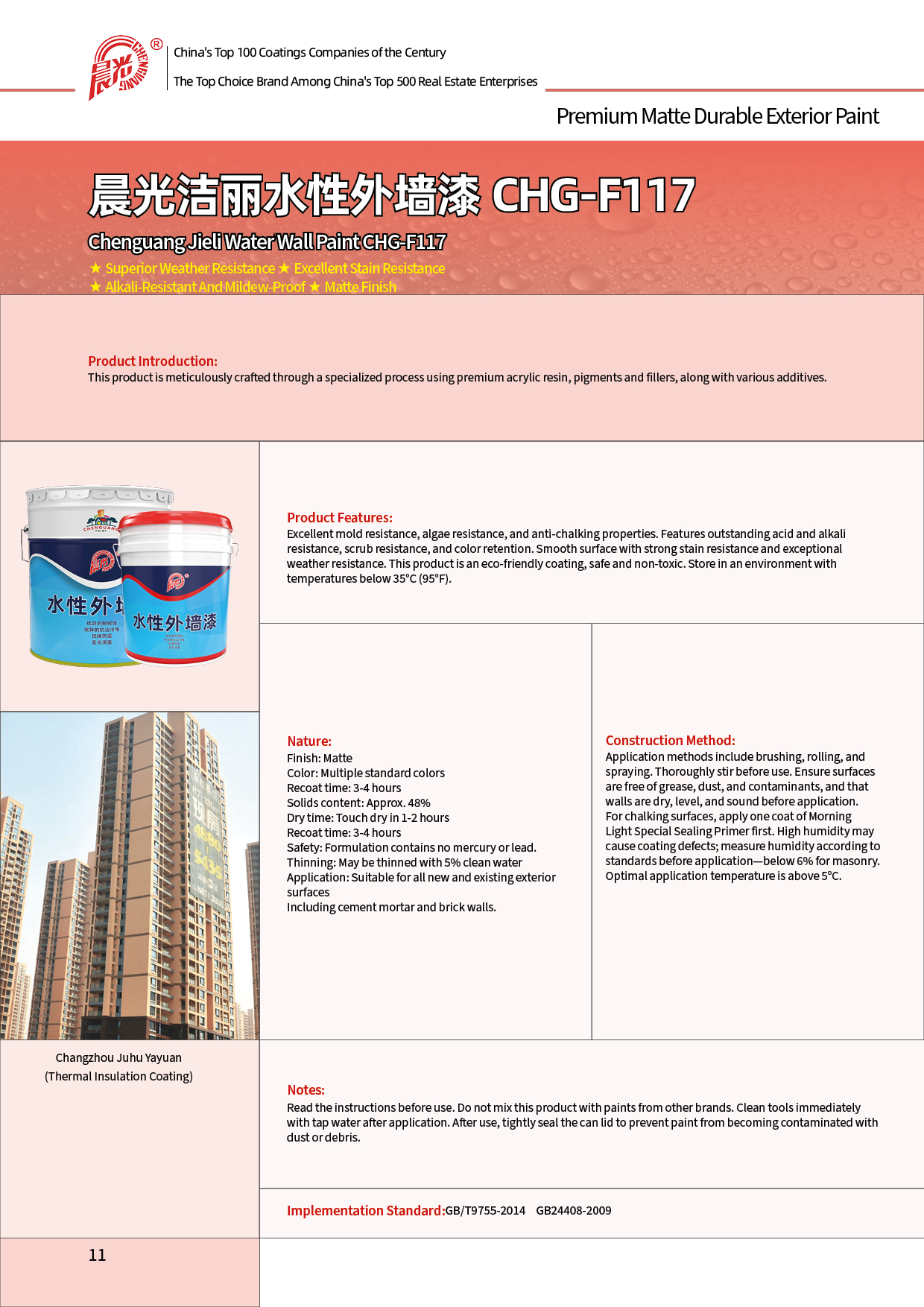 ★Excellent weather resistance ★Excellent stain resistance ★Alkali-resistant and anti-mildew ★Matte finish